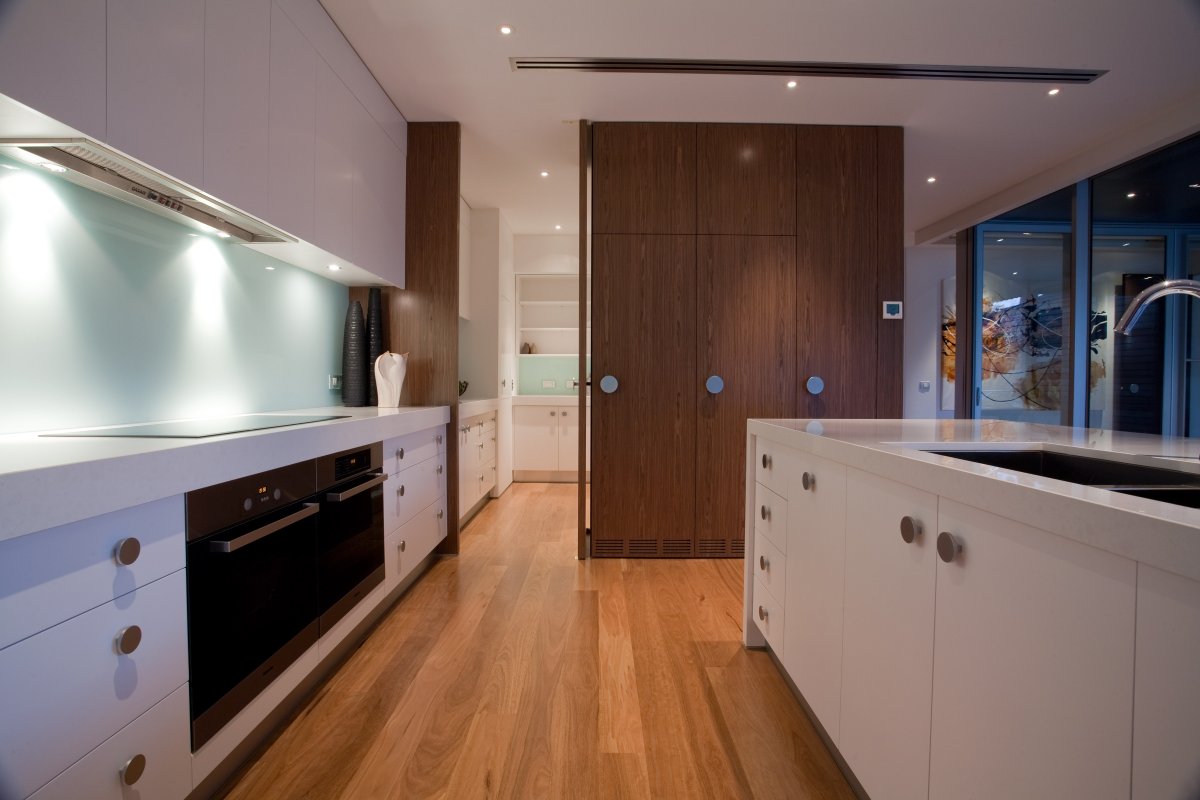 Um aparador está incluído o que viaja a partir da garagem para a copa que fica atrás de uma das quatro portas integradas na área da cozinha . O Calcutá Mármore clássico foi usado nas casas de banho , enquanto a cozinha tem César pedra bancadas e um cubo de preparação no final do principal banco ilha.